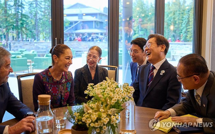 이날 클라우디아 셰인바움 멕시코 대통령과의 회담에서는 이 대통령이 셰인바움 대통령의 높은 지지율 배경에 관해 물었다고 한다.